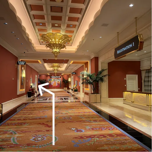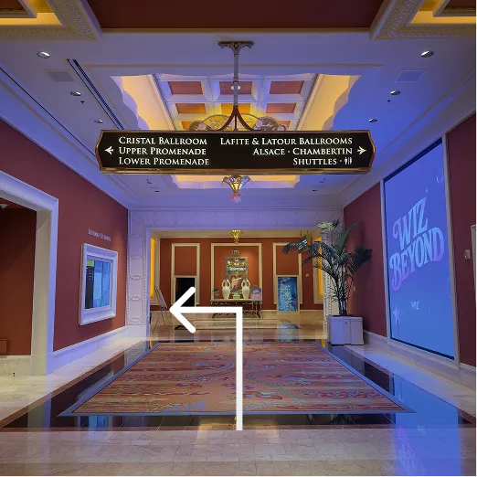 Keep going straight with a few gentle turns, following the signs toward the ballrooms.