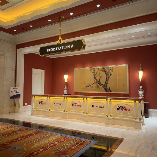 Take the escalator down to the Lower Convention Promenade. Turn right and follow the corridor until you reach the Inspire check-in desk at Registration A.